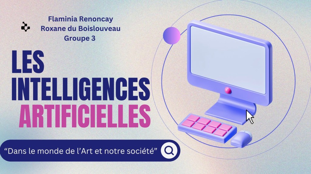 Les Intelligences Artificielles pourraient être définit comme l’ensemble des théories et des techniques développant des programmes informatiques complexes capables de simuler certains traits de l’intelligence humaine (raisonnement, apprentissage….). Les Intelligences Artificielles se sont développées ces dernières années et ont provoqués de nombreuses conséquences et nouveautés notamment dans le domaine de l’art.